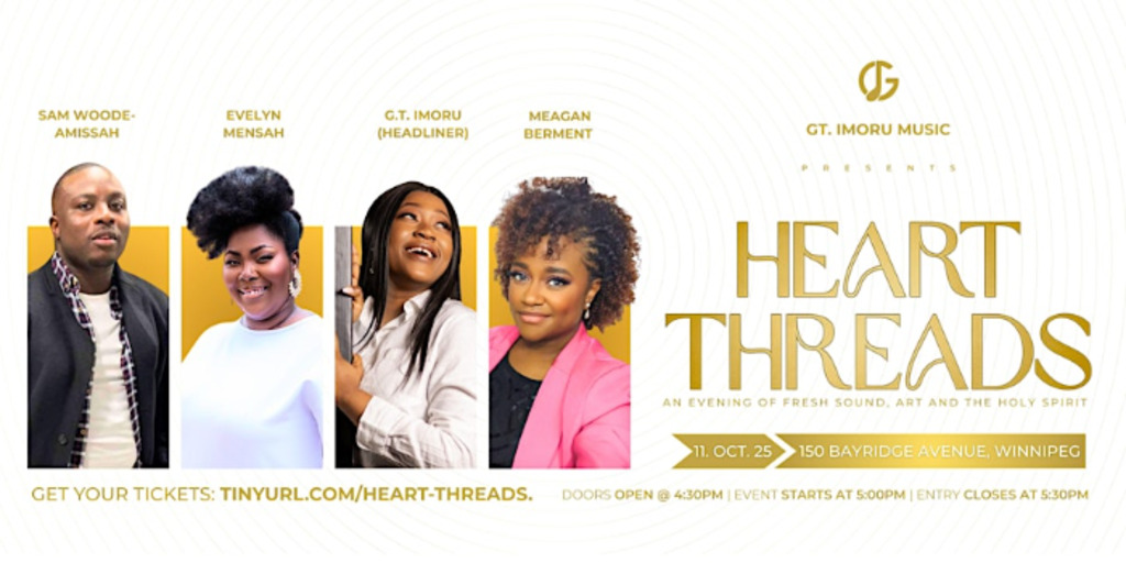 Ticket sale available at: https://www.eventbrite.ca/e/heart-threads-a-night-of-worship-with-gt-imoru-tickets-1603390416899
