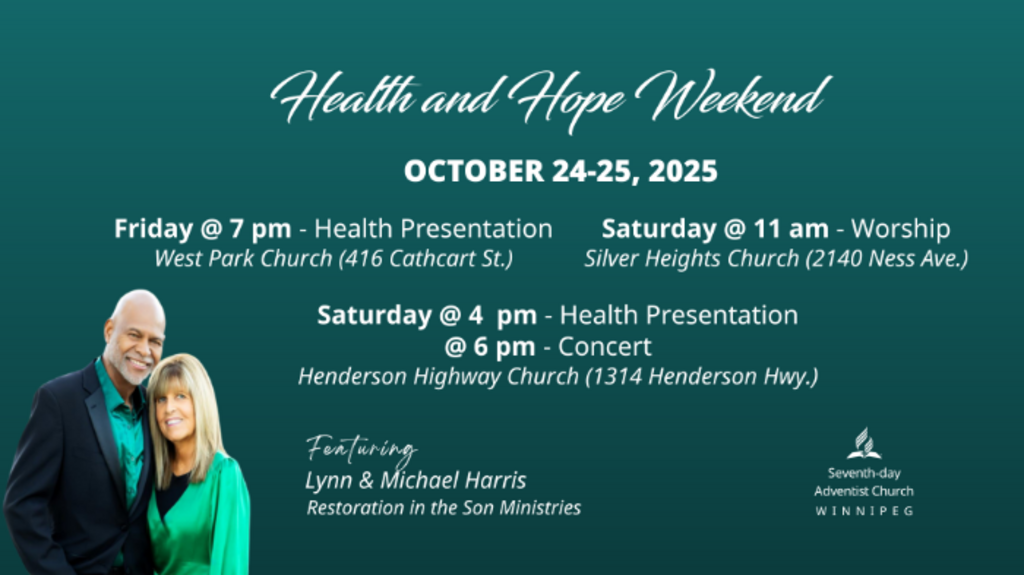 The Winnipeg Adventist Health Ministries are collaborating for this free event. Friends are welcome to learn more about health and have a musical treat.