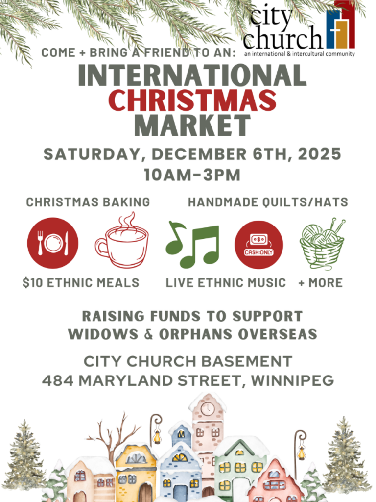 Enjoy Christmas baking, warm drinks, $10 ethnic meals (enjoy on-site or take home), handmade quilts/winter knitting, crafts, ethnic music, photo booth, books, and more! Still doing some Christmas shopping- post Black Friday sales? You're not the only one! We welcome you to escape the cold and come explore our Market in support of a good cause.