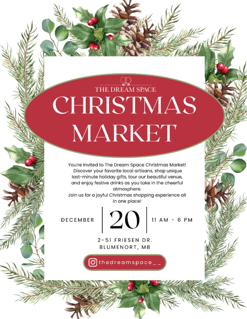Join us for a festive Christmas shopping experience at The Dream Space Christmas Market! Discover a curated selection of local artisans all in one place and shop for unique, last-minute holiday gifts while supporting local businesses.