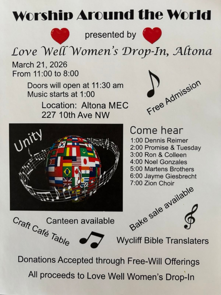 There will be different cultural groups throughout the day. Food will be available through the canteen and a bake sale. Raffles to be won and handmade crafts to buy. A free will offering will be taken.