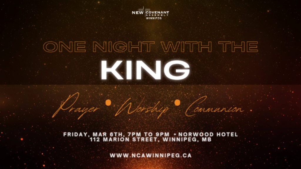 Join the New Covenant Assembly, Winnipeg for One Night with the King. A time of Worship, Prayer and Communion. Join us as we offer a heart of worship to God our King.