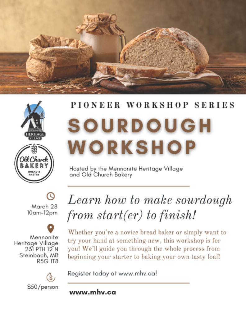 Join MHV for a Sourdough Workshop led by the staff at Old Church Bakery! Whether you’re a novice bread baker or simply want to try your hand at something new, this workshop is for you! We’ll guide you through the whole process from beginning your starter to baking your own tasty loaf!
