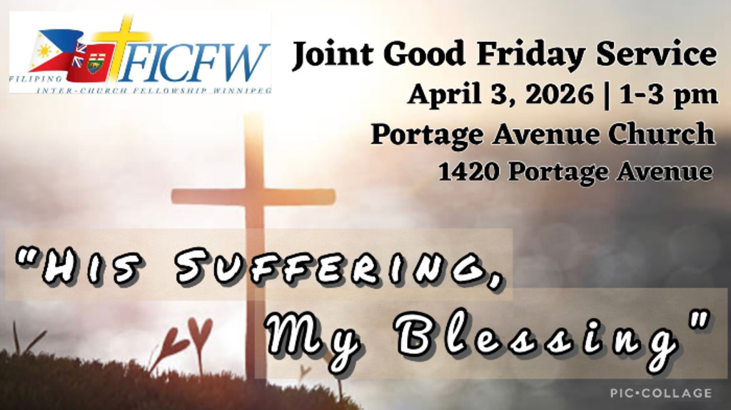 Filipino Inter Church Fellowship of Winnipeg (FICFW) holds its Annual Joint Good Friday Service this year with the theme: “His Suffering, My Blessing”. Over 25 Filipino Bible-believing churches from Winnipeg and beyond are invited as Pastors and leaders come together to come up with this huge and important day of remembering God’s love and Jesus’ sacrifice on the cross for our salvation.